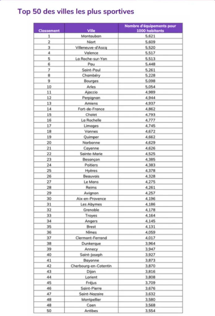 Le cabinet toulousain Smappen, spécialisé en géomarketing a utilisé les données de l’INSEE, pour déterminer quelles grandes villes françaises sont les mieux équipées pour faire du sport. Plusieurs villes du sud figurent dans le top 50.