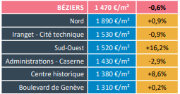 C’est plus de deux fois moins cher que la moyenne observée dans le département de l’Hérault (3 300 €/m², –0,9 % sur un an).