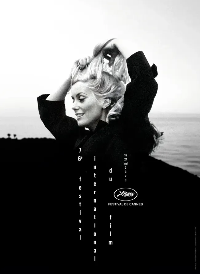 Catherine Deneuve a été choisie pour illustrer l'affiche officielle du 76ème Festival de Cannes, un choix qui rend hommage à sa longue carrière et à sa contribution exceptionnelle au cinéma français. L'actrice incarne à sa manière la richesse du cinéma que le Festival veut défendre, de films d'auteurs à des films populaires de qualité. Cette affiche intemporelle permet de redire le présent glorieux du cinéma et d'envisager son futur plein de promesses, car Catherine Deneuve est ce que le cinéma doit se souvenir d'être : insaisissable, audacieux et irrévérencieux.