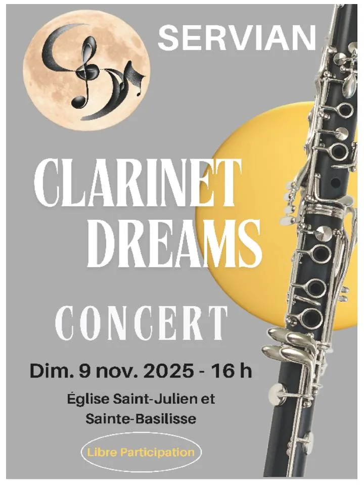 Les Amis de l’Orgue de Servian vous attendent très nombreux le dimanche 9 novembre à 16h à l’église de Servian pour écouter et apprécier l’ensemble « Clarinet Dreams ».