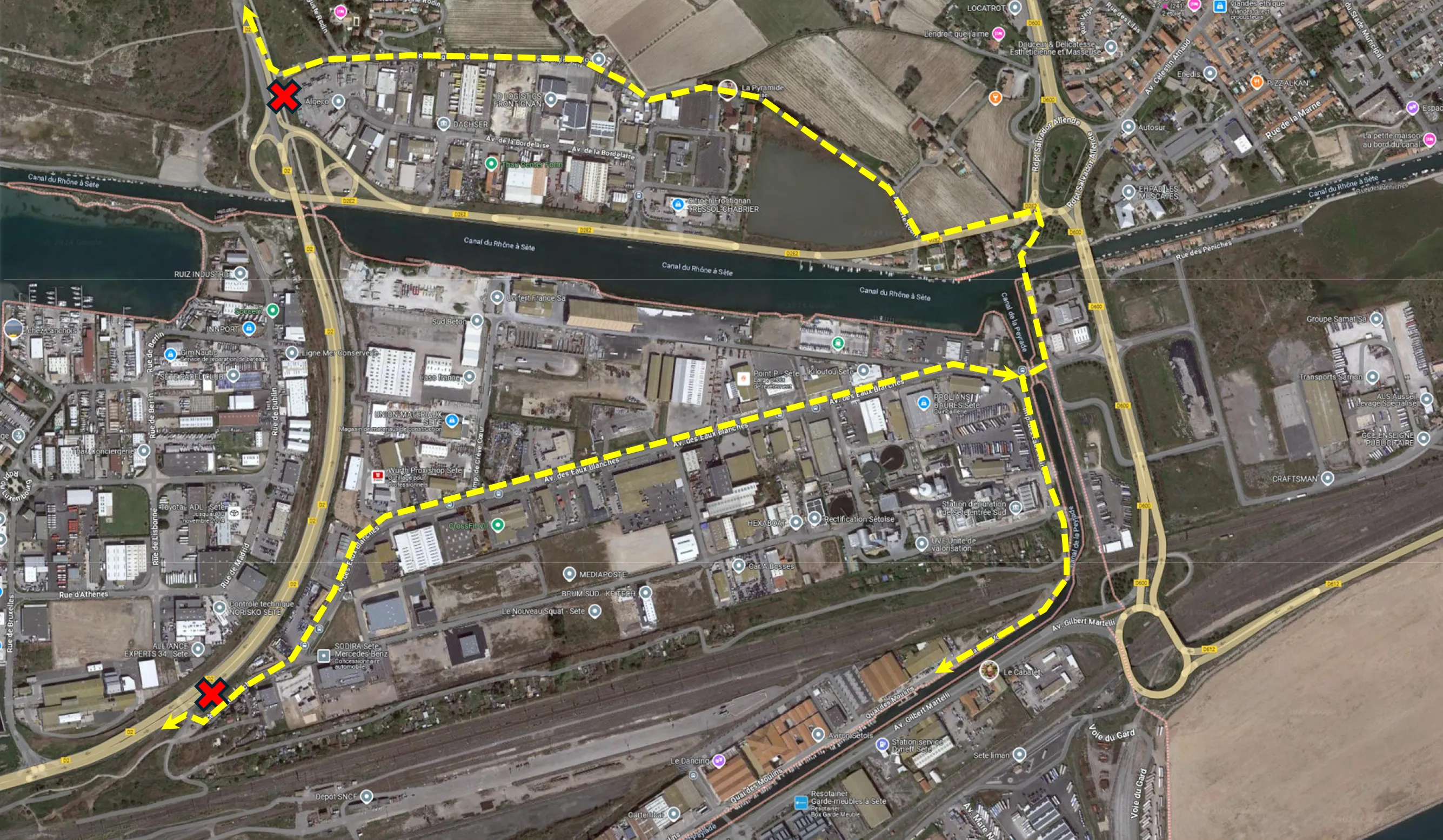 Les travaux sur la RD2 entraîneront la fermeture de la voie verte reliant Balaruc-les-Bains à Sète, à partir du 21 octobre 2024. Cette voie sera inaccessible dans les deux sens entre le canal du Rhône à Sète et la ZAE des Eaux Blanches. Des itinéraires de déviation seront proposés via la ZAE des Eaux Blanches et le Quai des Moulins pour rejoindre Sète.