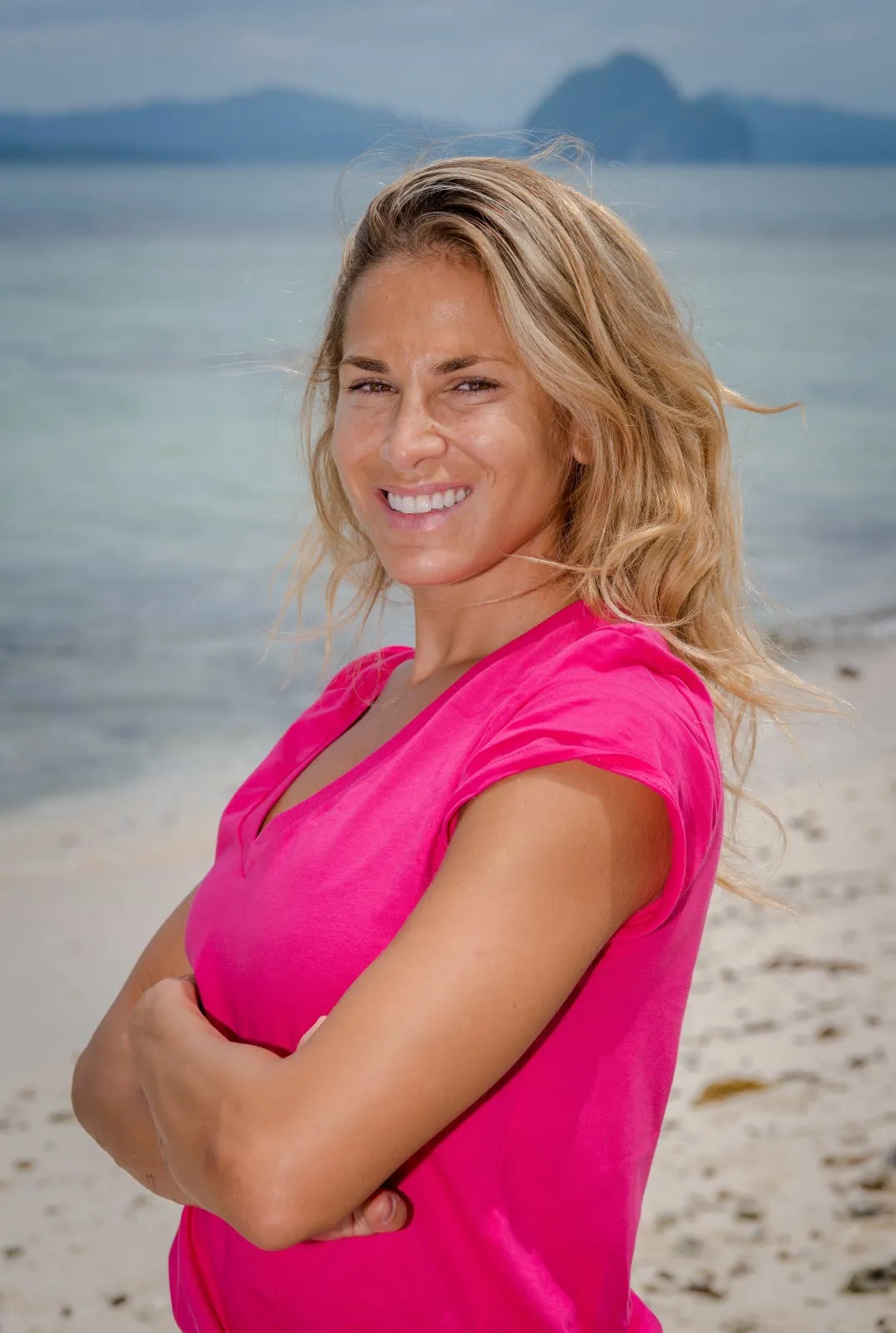 Fille d'un père sportif de haut niveau et légionnaire, Anne-Sophie est mariée à l'ancien footballeur du MHSC Anthony Mounier. En participant à Koh-Lanta, elle veut montrer une autre image des femmes de footballeur et prouver à ses fils que "maman est forte". Photo A.ISSOCK/ALP/TF1.