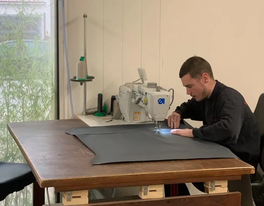 La passion pour le métier de sellier a été transmise de père en fils chez nous. Dès son plus jeune âge, mon fils accompagnait son père à l'atelier et s'amusait à démonter des selles de moto. Il a ensuite suivi une formation en apprentissage et a décidé de revenir travailler avec nous après avoir parcouru la France avec les Compagnons du Devoir. C'est avant tout une passion pour lui, et nous sommes fiers de voir cette tradition se perpétuer au sein de notre entreprise familiale.