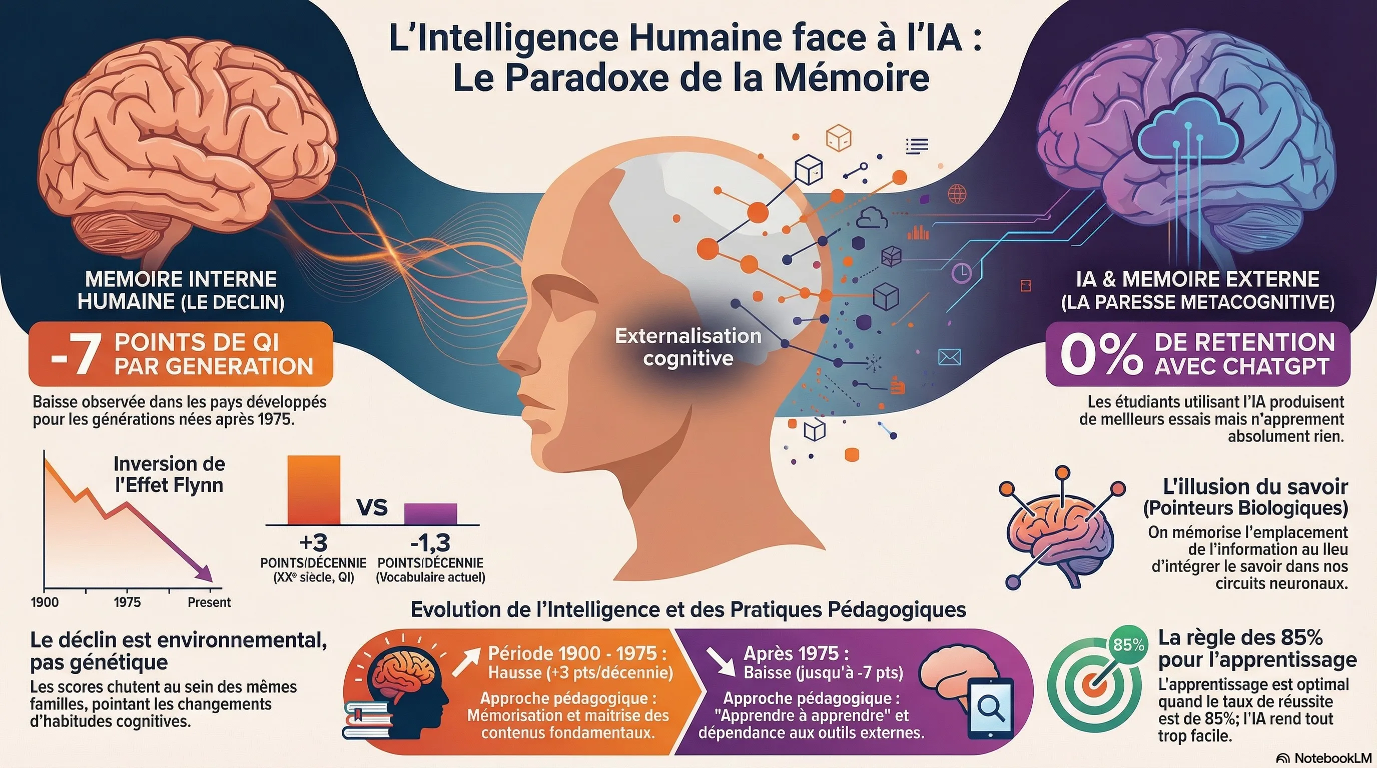Alors que 59 % des 12-17 ans utilisent l’IA selon le Crédoc, des chercheurs alertent sur un risque d’atrophie de la mémoire biologique. L’étude “The Memory Paradox” (2025) analyse comment l’externalisation cognitive pourrait affaiblir l’apprentissage si l’usage n’est pas encadré.