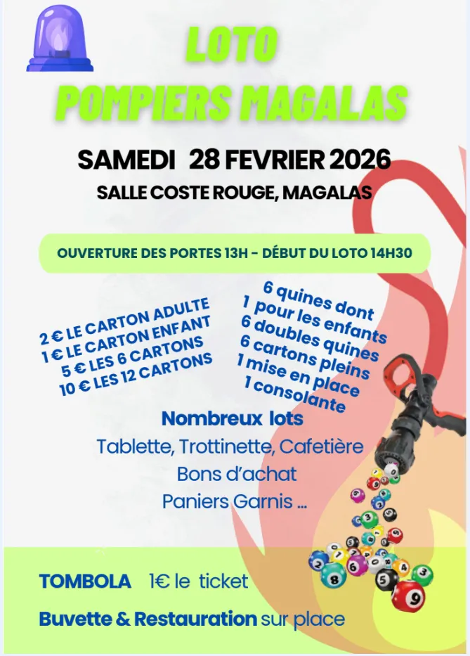 L'amicale des Sapeurs-Pompiers de Magalas organise son loto annuel !
