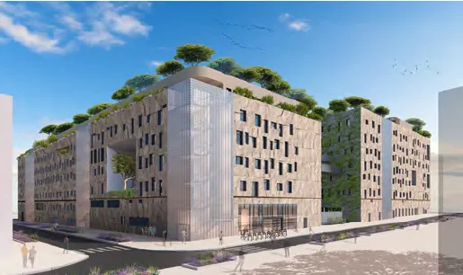 - Une surface de 28 000 m² répartis en trois bâtiments en R+7.