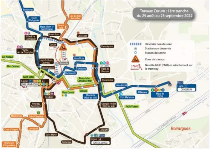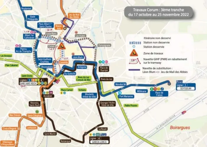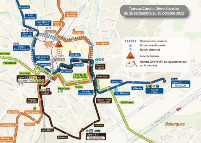 stations Beaux-Arts et Jacou. La station Corum ne sera pas desservie,