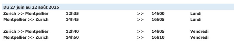 Renseignements et réservations sur www.swiss.com ou sur www.montpellier.aeroport.fr