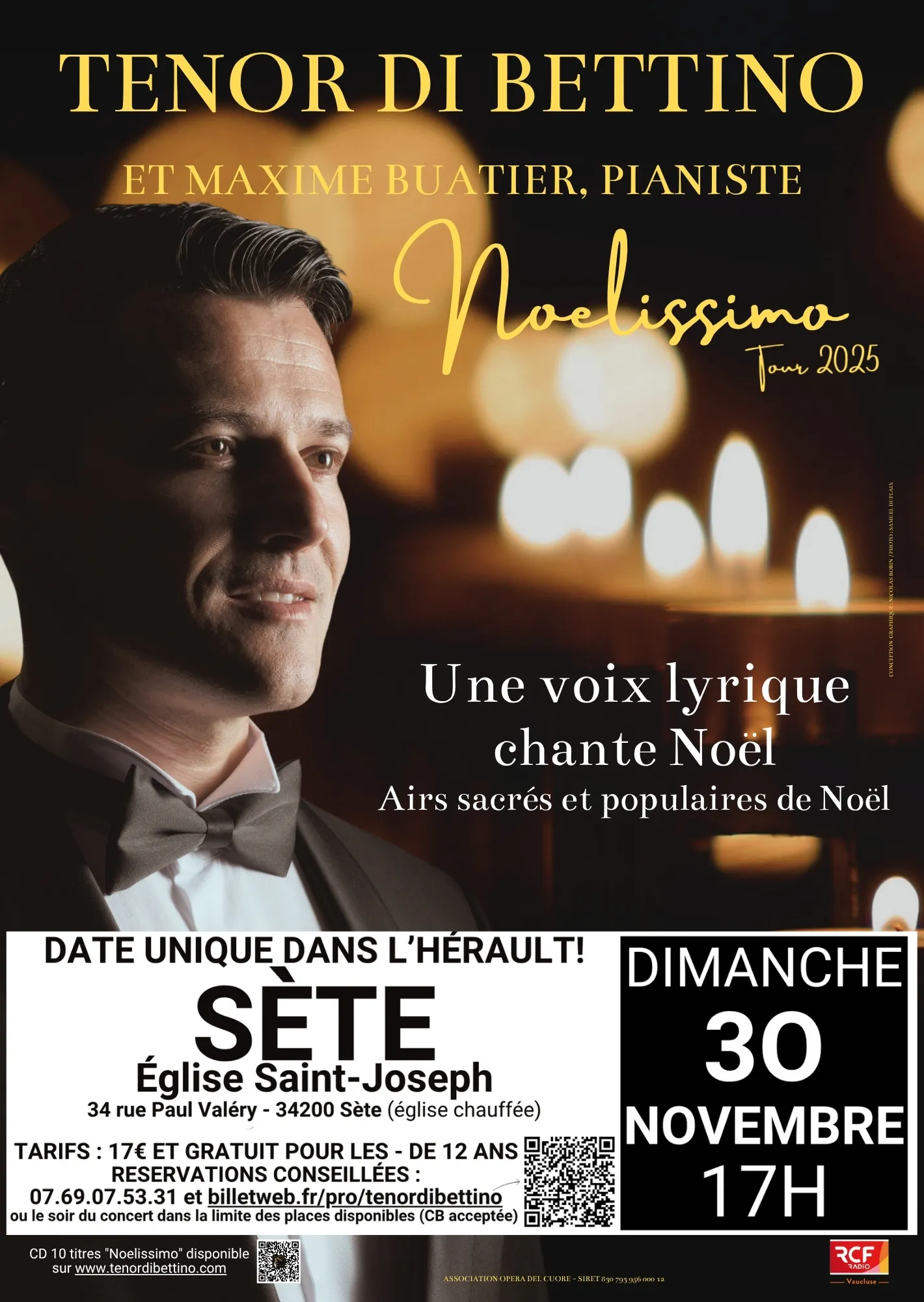 Le Ténor Di Bettino vous propose la Tournée "Noelissimo" 2025 le dimanche 30 novembre 2025 à 17h, à l'Eglise Saint-Joseph de Sète (34).