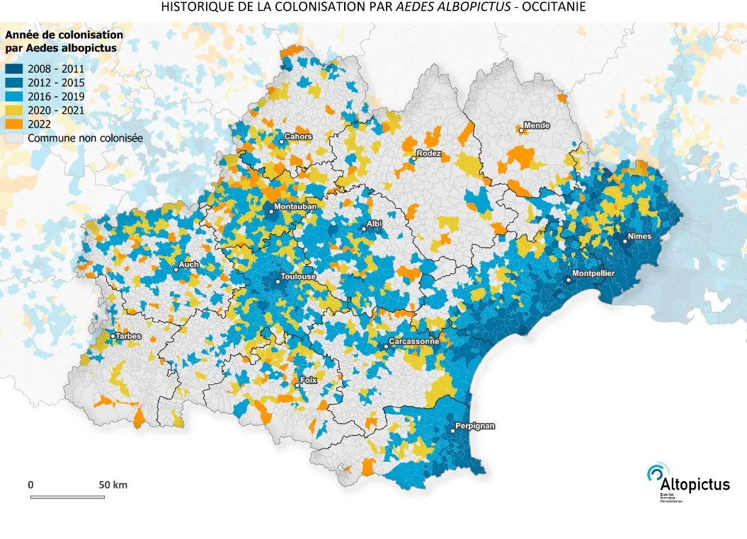 44% %des communes d’Occitanie sont colonisées ce qui représente 90%de la population régionale soit près de 5.5 millions d’habitants exposés