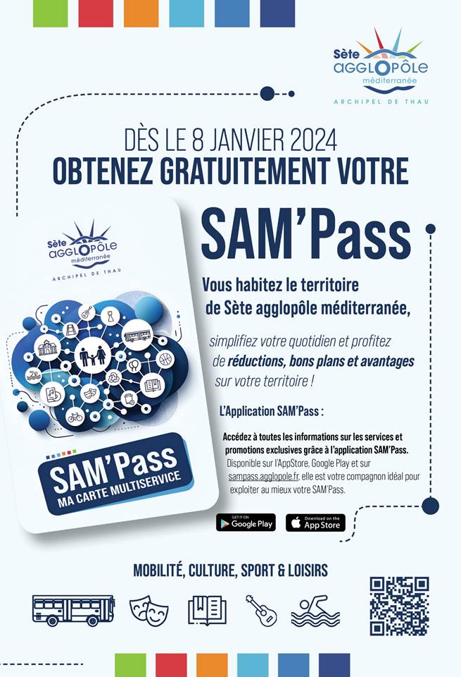 L'Agglopôle Sète Méditerranée inaugure en cette nouvelle année sa carte multiservice axée sur le pouvoir d’achat : Le SAM'Pass, une carte nominative, personnelle et gratuite destinée à tous les habitants des quatorze communes de l'agglo. Disponible en version physique ou numérique, elle remplace plusieurs cartes d'abonnement et permet l'accès aux services communautaires au moyen d'un seul support.