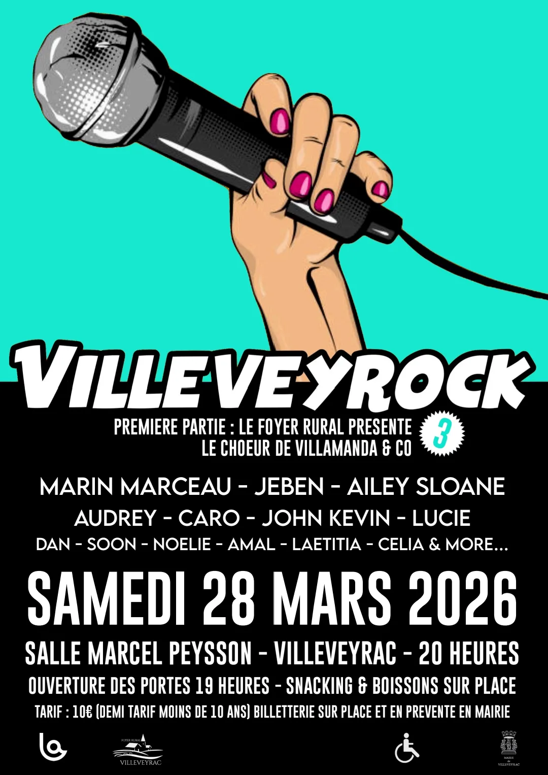 Venez danser, chanter à la salle Marcel Peysson de Villeveyrac le samedi 28 mars, l’ouverture des portes dès 19h, un snacking et buvette vous seront proposés sur place.